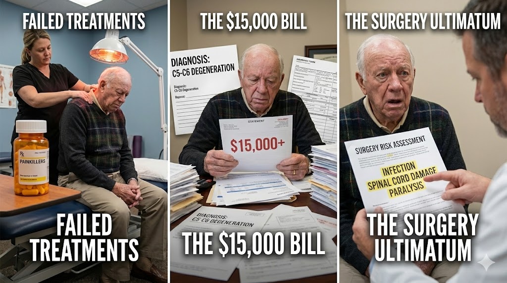 - Chiropractor: This was the most expensive mistake. Every time they “cracked” my neck, it felt great for an hour. But the hump remained. My doctor later explained: “John, cracking is temporary. If you don’t use traction to open the discs and correct your daily posture, the bones will just slide back into the bad position.”