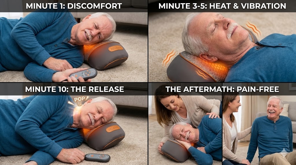 Minute 3: A wave of intense warmth radiated from the device. Not superficial skin heat, but deep, penetrating heat. I could feel my rock-hard neck muscles beginning to melt, like butter on a hot pan.