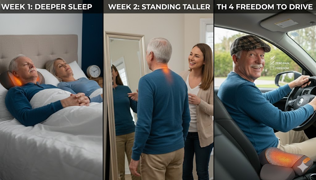 - Week 4: I drove Sarah to the supermarket. I checked my blind spot while reversing with zero pain. That feeling of freedom… it was priceless.